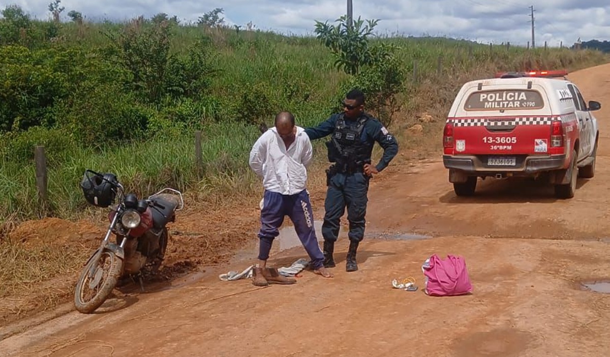 ‘Ceará’ foi capturado enquanto tentava fugir de Cumaru do Norte em direção a Ourilândia, na vicinal Águas Claras (Foto: 36º BPM)