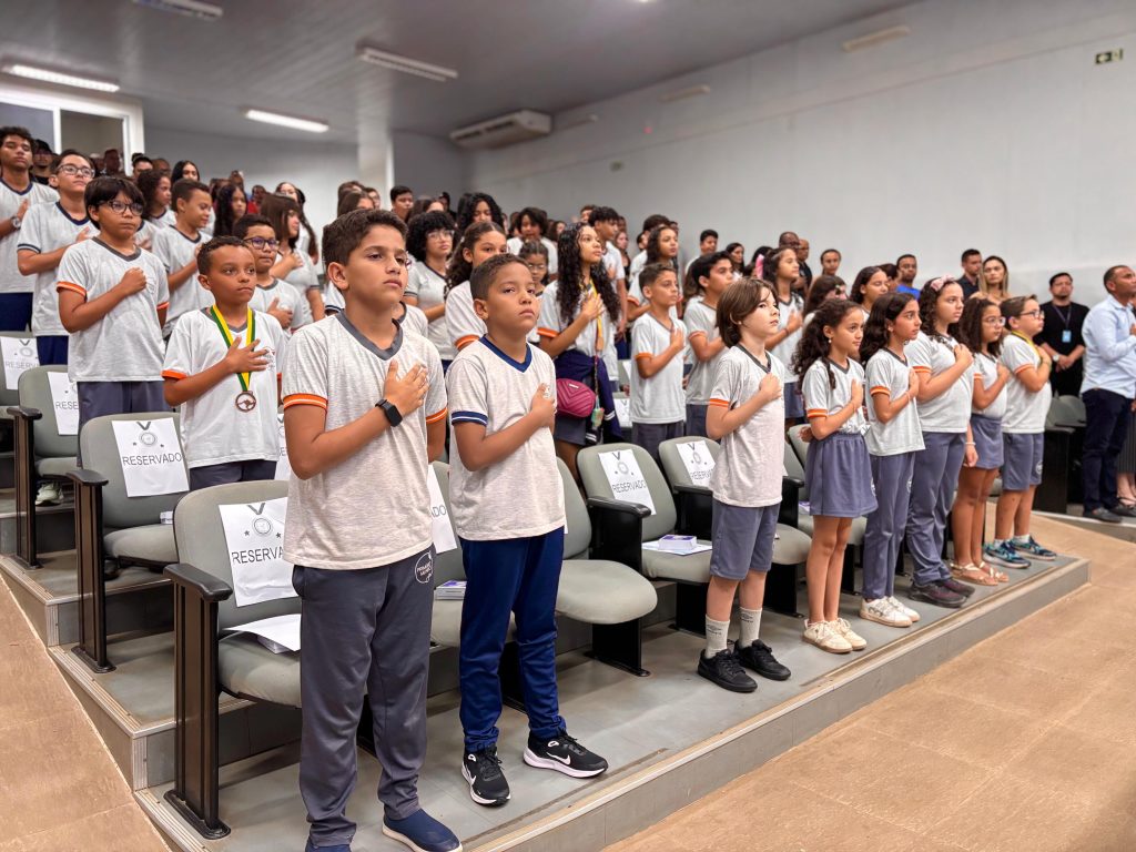Alunos participam de cerimônia de entrega de medalhas. Foto: Divulgação.
