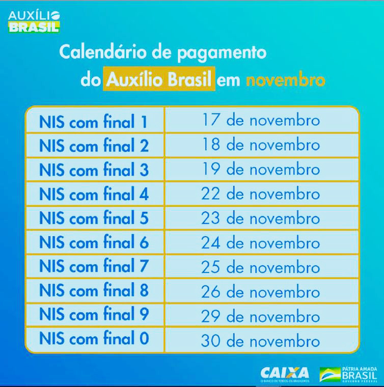 Caixa Econômica Federal paga nesta sexta-feira (22) a parcela de abril do Auxílio Brasil aos beneficiários com Número de Inscrição Social (NIS) com final 5. O valor mínimo do benefício é de R$ 400. As datas seguirão o modelo do Bolsa Família, que pagava os beneficiários nos dez últimos dias úteis do mês.