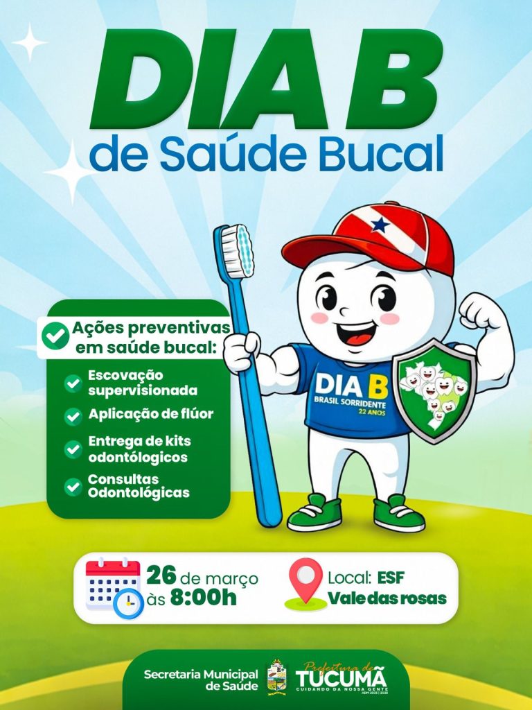 A Prefeitura de Tucumã, por meio da Secretaria Municipal de Saúde, realiza no próximo dia 28 de março o Dia D de Saúde Bucal, uma ação voltada à promoção de hábitos saudáveis e prevenção de doenças bucais.