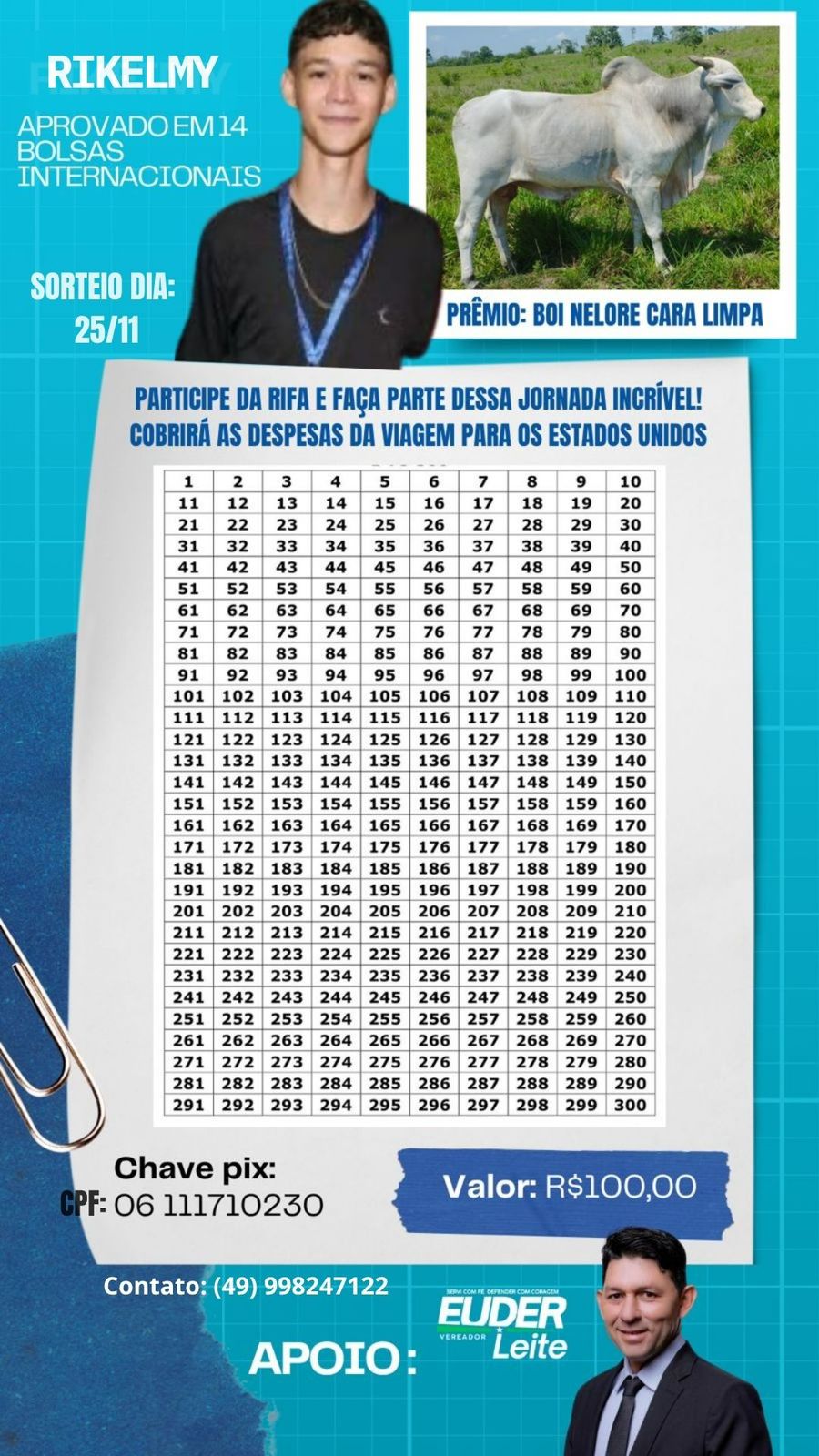 Para transformar um sonho em realidade, o jovem Rikelmy Nogueira, 20, aprovado em 14 bolsas de estudos internacionais, está promovendo uma rifa solidária com o objetivo de arrecadar recursos para custear sua viagem aos Estados Unidos, onde pretende iniciar sua trajetória acadêmica.