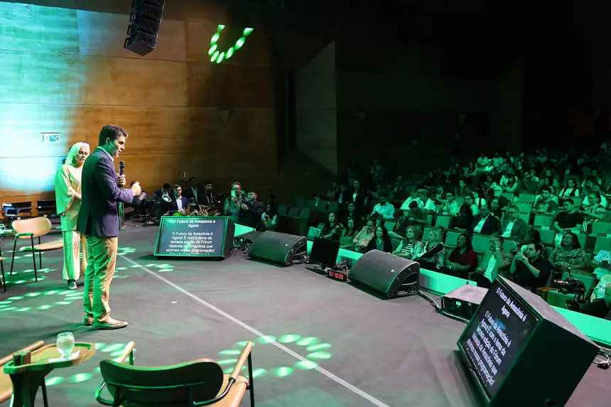 O governador do Pará, Helder Barbalho, defendeu nesta terça-feira (7) a construção de um modelo econômico da floresta viva, capaz de conciliar desenvolvimento, geração de renda e preservação ambiental. A fala ocorreu durante a abertura do III Fórum Varanda da Amazônia, realizado no Teatro Maria Sylvia Nunes, em Belém, com a presença da cantora Fafá de Belém, idealizadora do evento.