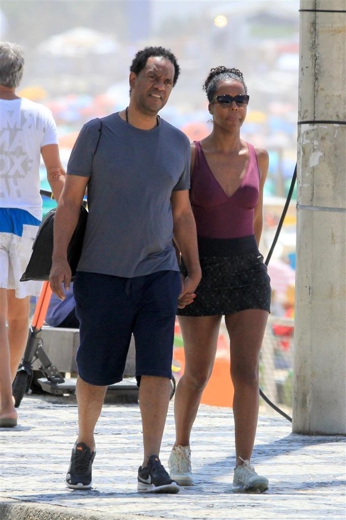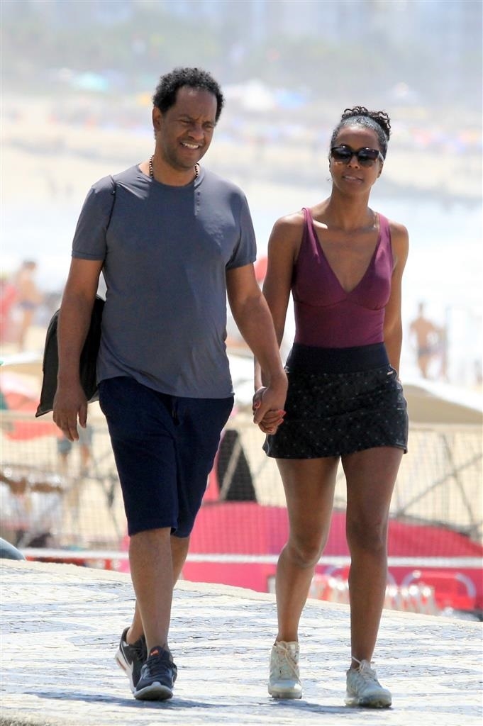 Maju Coutinho curte praia com o marido em dia de folga.