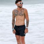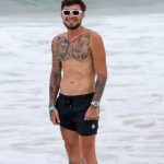 O cantor MC Gui foi fotografado no domingo (22) na praia da Barra da Tijuca, no Rio de Janeiro. Ele estava acompanhado da mãe, Claudia Barbosa, do pai Rogério Silva e de outros familiares, enquanto celebravam o aniversário dela.
