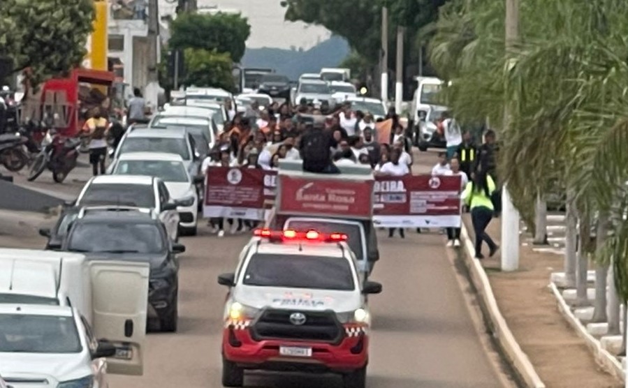 Participantes percorrem as ruas de Ourilândia do Norte durante a Caminhada de Mobilização contra a venda de bebidas alcoólicas a menores. (Foto: PMPA)