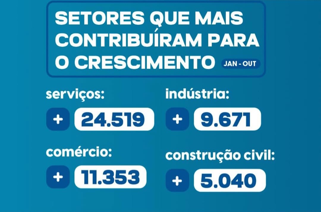 O setor de serviços foi o que mais contribuiu para o saldo positivo, com 24.519 vagas criadas. Na sequência, a indústria aparece com 9.671 novas admissões, refletindo o avanço de atividades produtivas estimuladas pelo ambiente favorável gerado por investimentos estaduais.