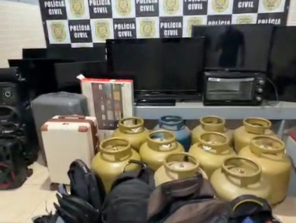 Durante o cumprimento dos mandados de prisão e de busca e apreensão, os policiais civis encontraram oito porções de substância análoga ao crack, além de diversos objetos de procedência suspeita, como televisores, botijões de gás, caixas de som, notebooks, celulares, relógios, ferramentas e utensílios domésticos.