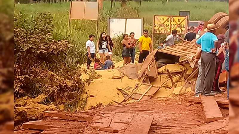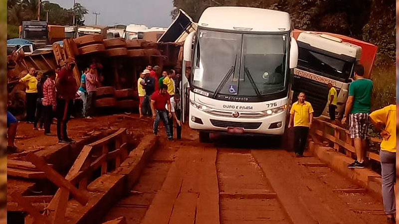 Uma ponte de madeira localizada na BR-230, mais conhecida como Transamazônica, no trecho que liga os municípios de Itaituba e Rurópolis, no sudoeste paraense, quebrou na manhã deste sábado (9), enquanto uma carreta trafegava pelo local. O veículo tombou e os grãos ficaram espalhados pelo chão.