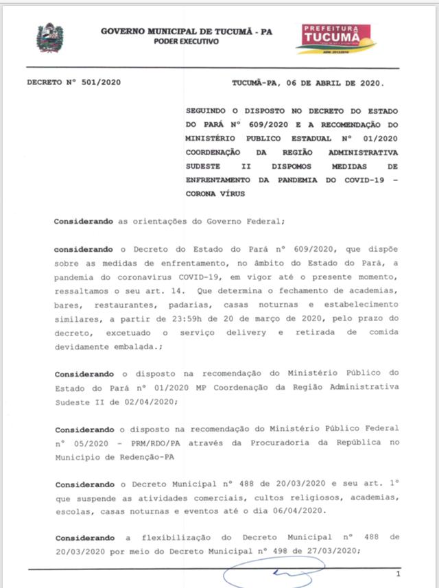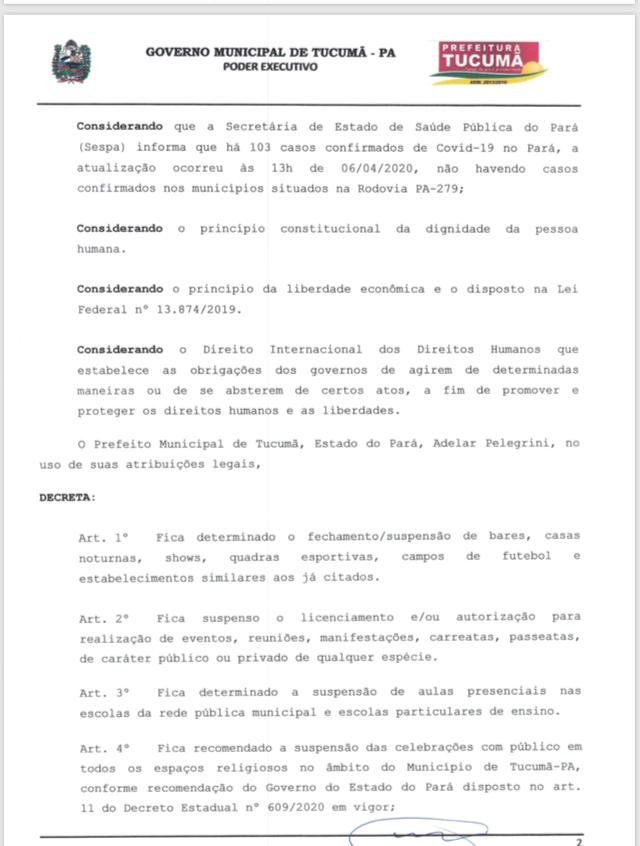 De acordo com decreto, as novas medidas só foram possíveis por não haver casos confirmados de covid-19 nos municípios situados na região da PA 279, até esta segunda-feira, 06.