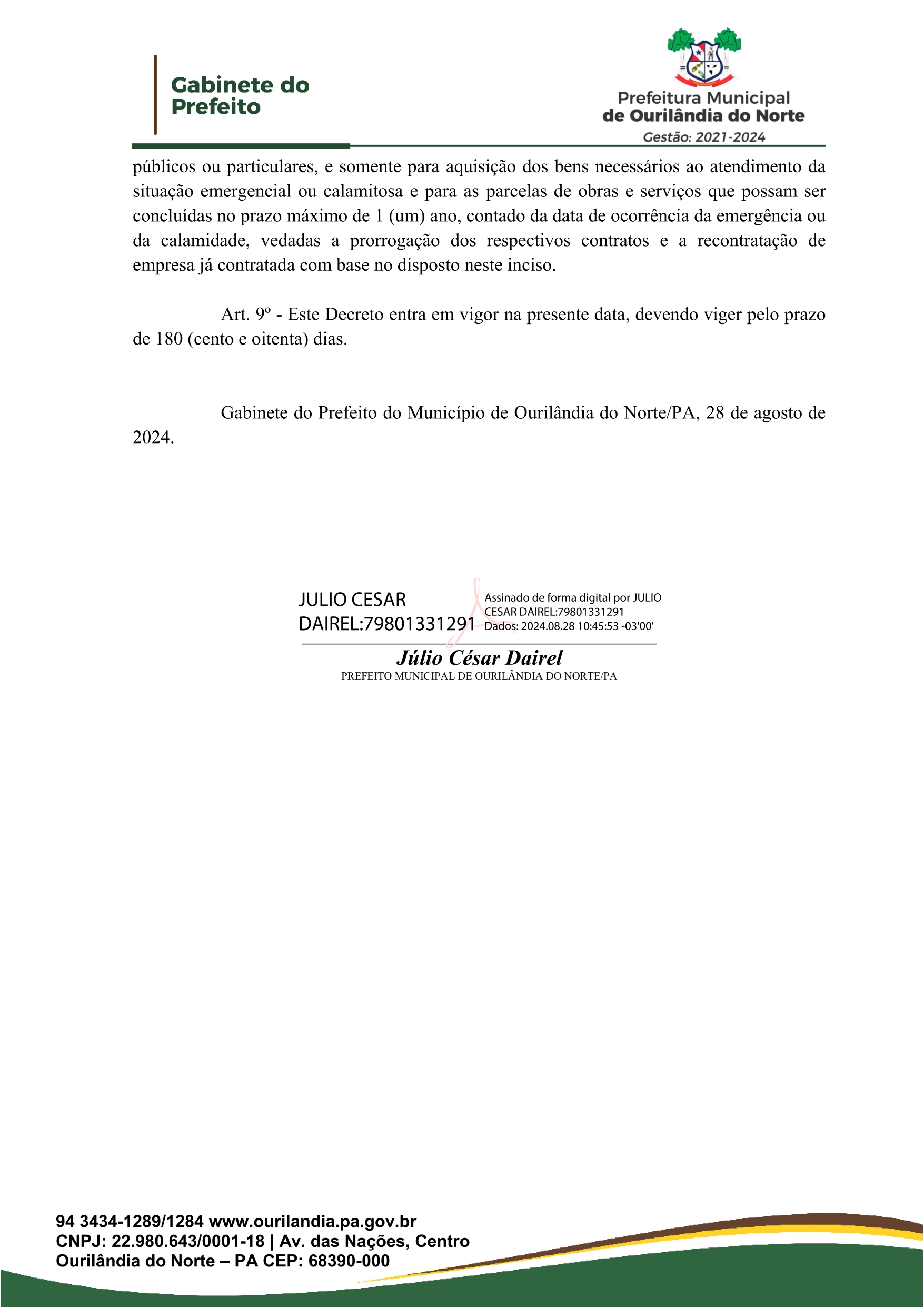 Veja abaixo a íntegra do decreto do prefeito Dr. Júlio: