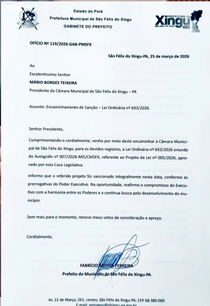 O prefeito Fabrício Batista (Podemos ) sancionou, nesta quarta-feira (25), uma lei que normatiza a instalação e utilização de fios nos postes de energia e telecomunicações em São Félix do Xingu, sul do Pará.