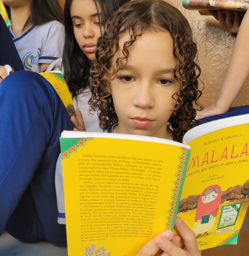 Um dos livros utilizados pelo professor durante o processo criativo do projeto foi “Malala, a menina que queria ir para a escola”. Foto: Arquivo Pessoal.