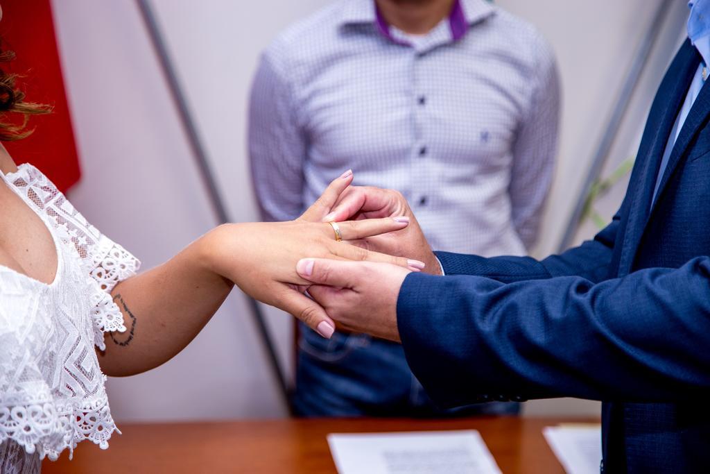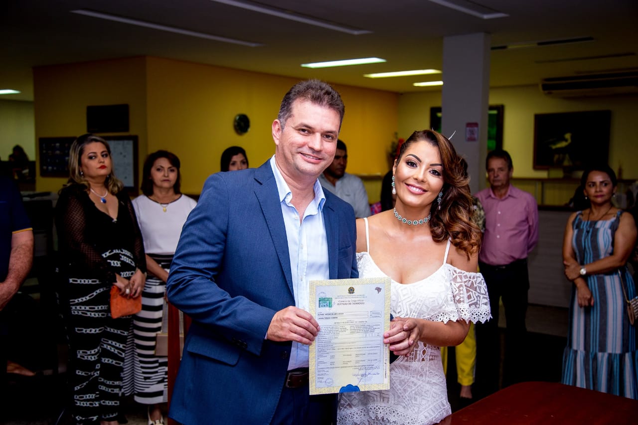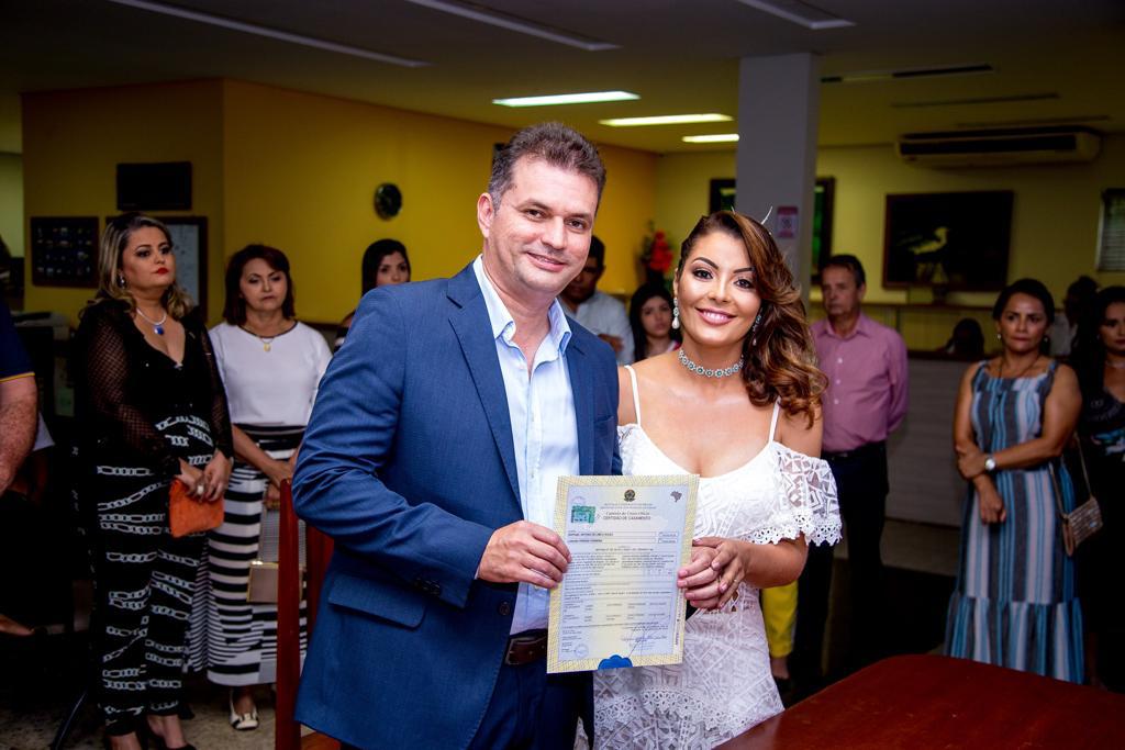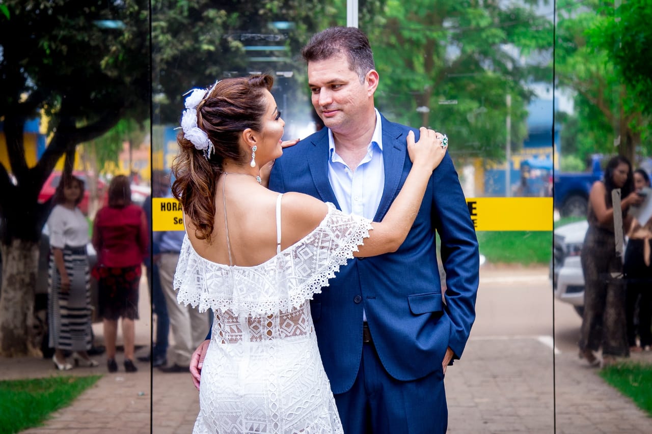 Com olhares apaixonados e na presença de amigos e familiares, o casal Raphael Antônio, secretário de Saúde de Tucumã, e a secretária de Saúde de Xinguara, Janaína Pereira, casaram-se , nesta quarta-feira, 12, no cartório da cidade de Xinguara .