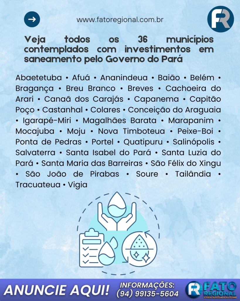 Os recursos repassados, superiores a R$ 100 milhões, são oriundos da outorga paga pela concessionária Águas do Pará, vencedora da licitação realizada em 2025. A empresa assumiu a responsabilidade pelos serviços de abastecimento de água e esgotamento sanitário nos municípios contemplados. Os valores poderão ser aplicados conforme as prioridades definidas previamente por cada gestão municipal, fortalecendo políticas públicas locais e promovendo desenvolvimento regional.