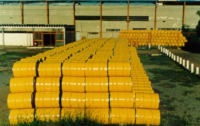 Toneis com as 6 mil toneladas de lixo radioativo do incidente com césio-137, um dos maiores acidentes nucleares fora de usinas da história do mundo (Foto: CNEN / Arquivo)