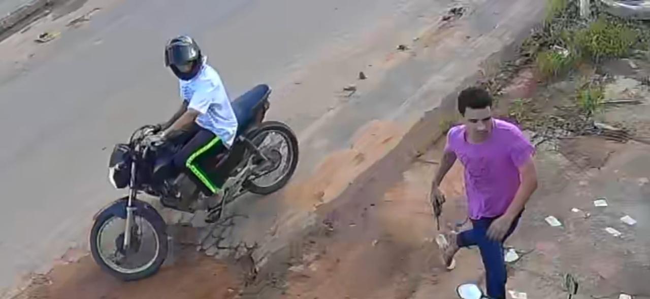 Imagens de câmeras que flagraram o assalto a um motociclista em Tucumã, no sábado, 7 de março, no qual a vítima foi baleada no ombro (Foto: 36º BPM)