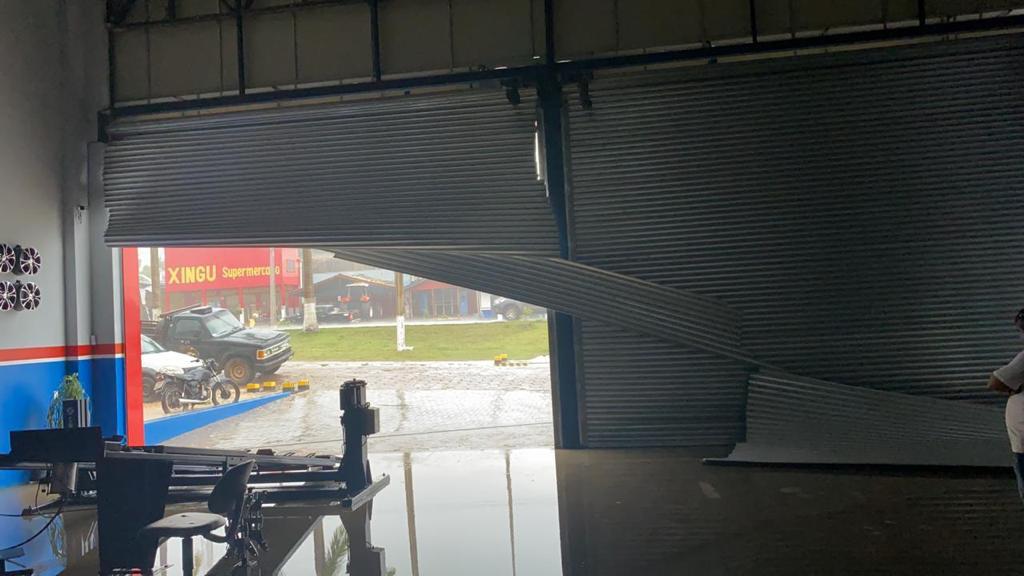 Segundo informações, casas destelhadas, empresas tiveram portas arrancadas devido a força do vento, e uma árvore caiu na Rua Aeroporto, como mostra o vídeo à baixo, veja: