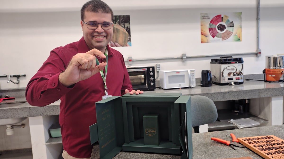 Fabio Moura, professor doutor em Biotecnologia e diretor do Cvacba, detalha que as pesquisas buscam a valorização tanto da parte mais nobre do cacau, quanto dos subprodutos, como polpa – há um recente trabalho de conclusão de curso sobre sucos que pode ser patenteado -, a casca e a “testa” da amêndoa. Tudo para que o produtor não dependa apenas de mandar as sementes não fermentadas para moageiras produzirem manteiga de cacau, elemento responsável pelo “sabor chocolate”.