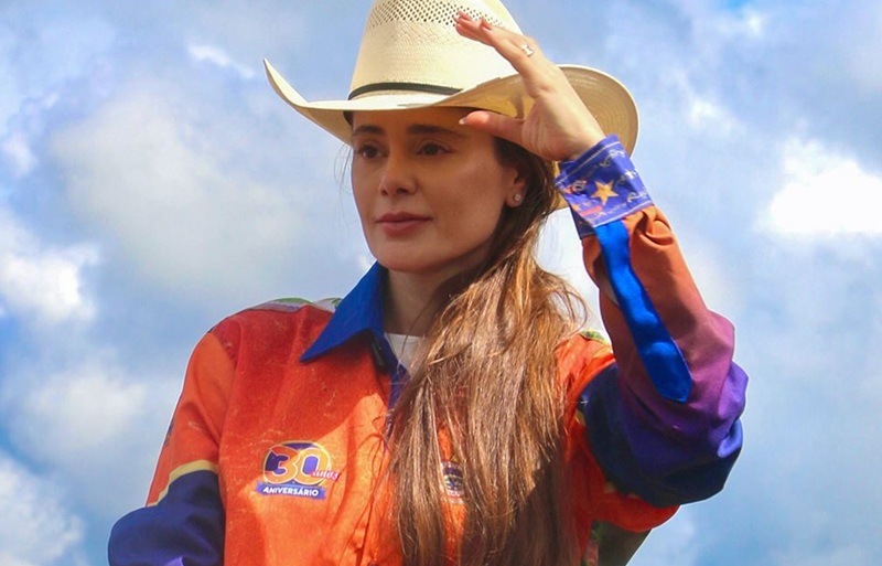 Erika Sabino, que tem uma forte atuação com ações e projetos sociais também cumprimento o povo durante a agenda em Rio Maria (Foto: Divulgação)